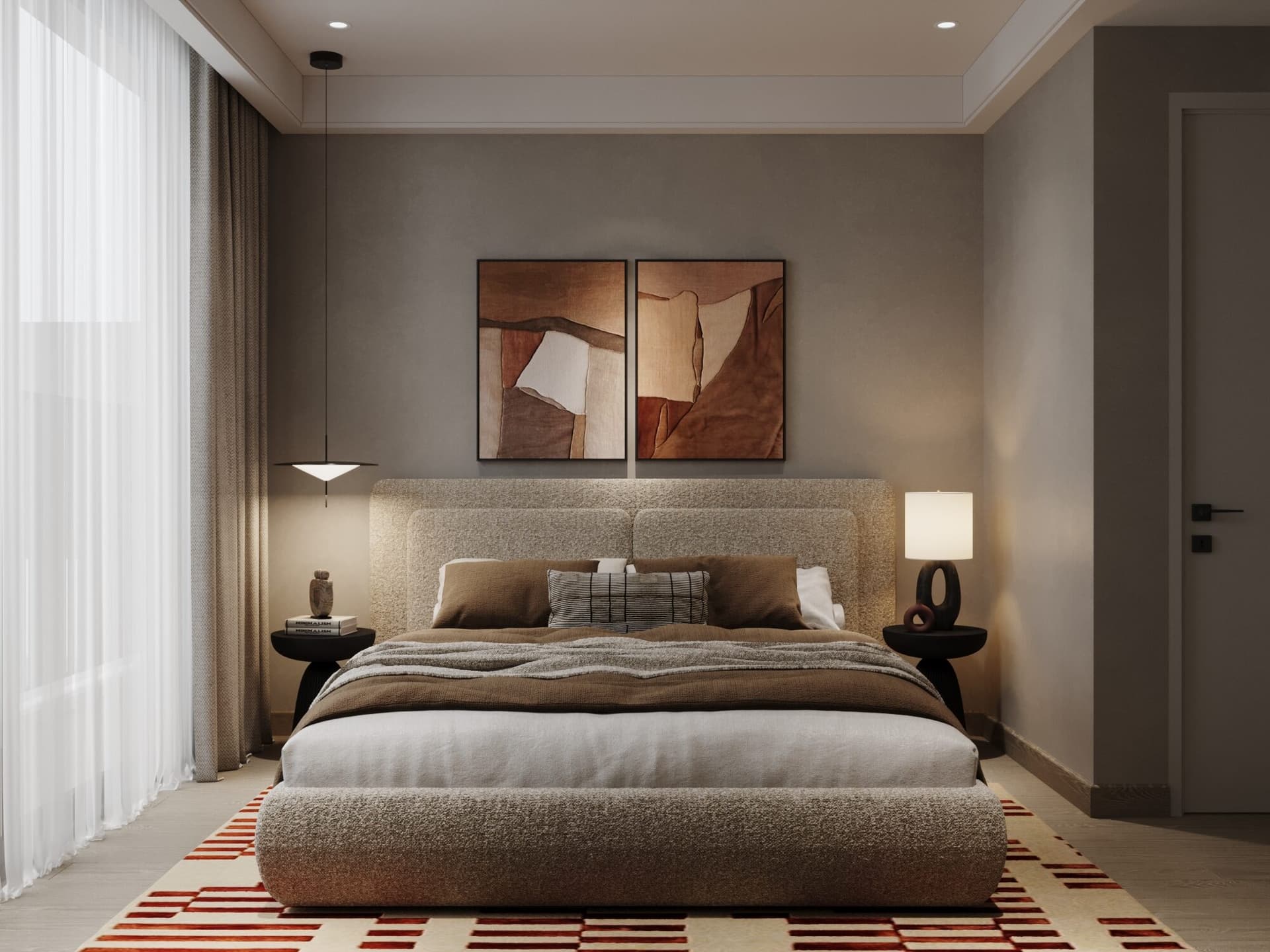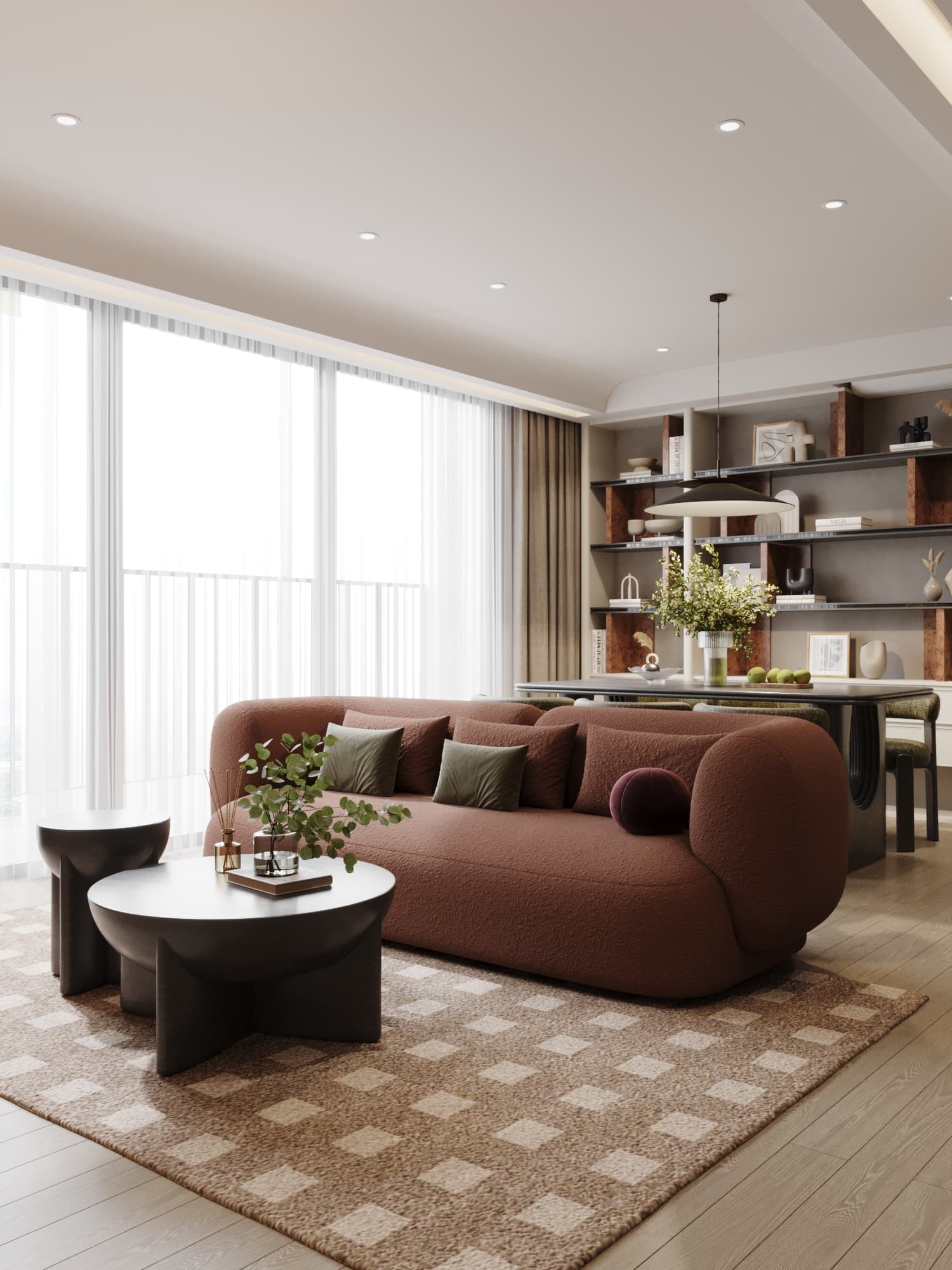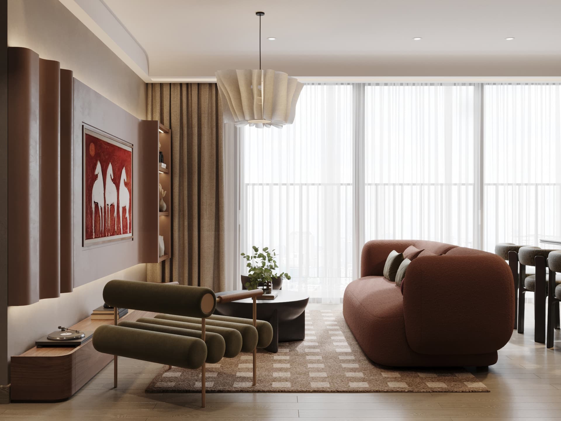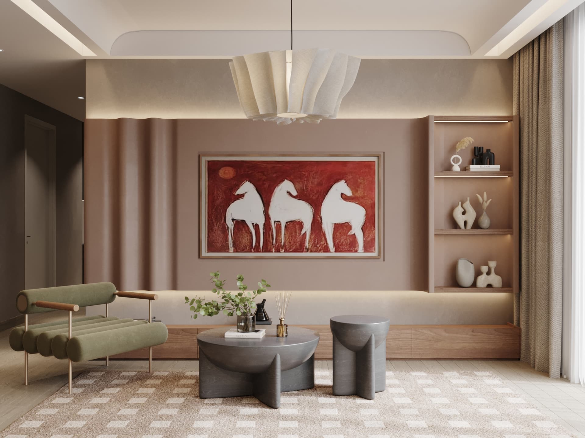 Đường nét tự do, mềm mại: Khác với phong cách Hiện đại chủ yếu dùng đường thẳng, phong cách Đương đại sử dụng linh hoạt các đường cong, hình khối điêu khắc nghệ thuật để tạo sự uyển chuyển và chiều sâu cho không gian.