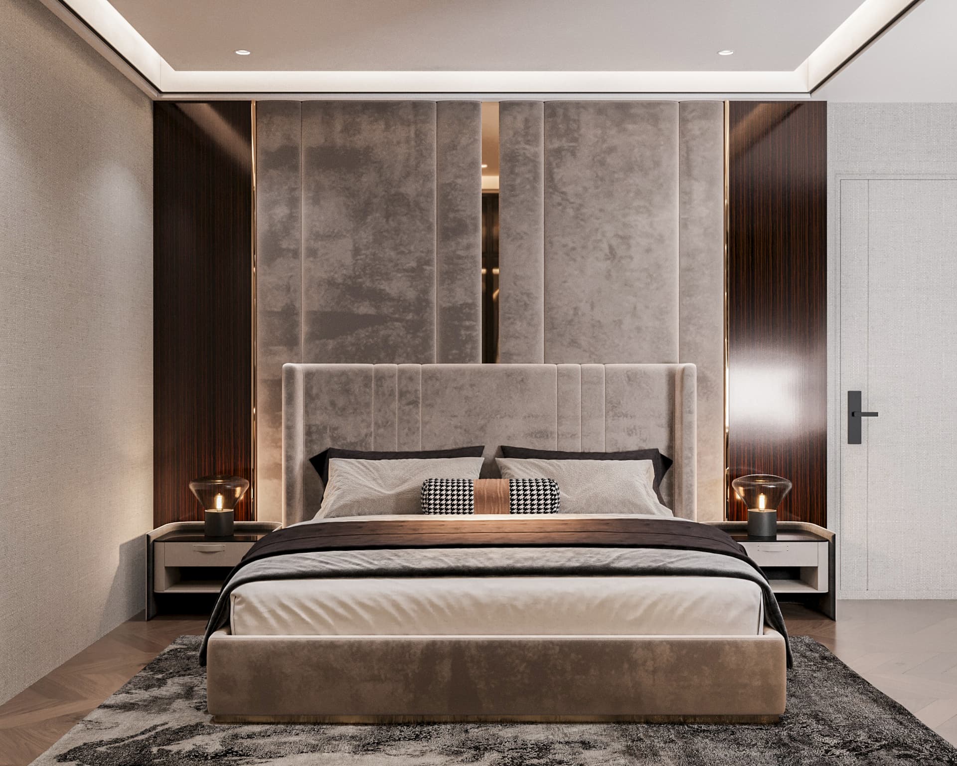 Sàn gỗ xương cá (Herringbone): Sàn gỗ lát kiểu xương cá là dấu ấn không thể thiếu, mang lại cảm giác ấm cúng, hoài niệm và chiều sâu cho không gian.